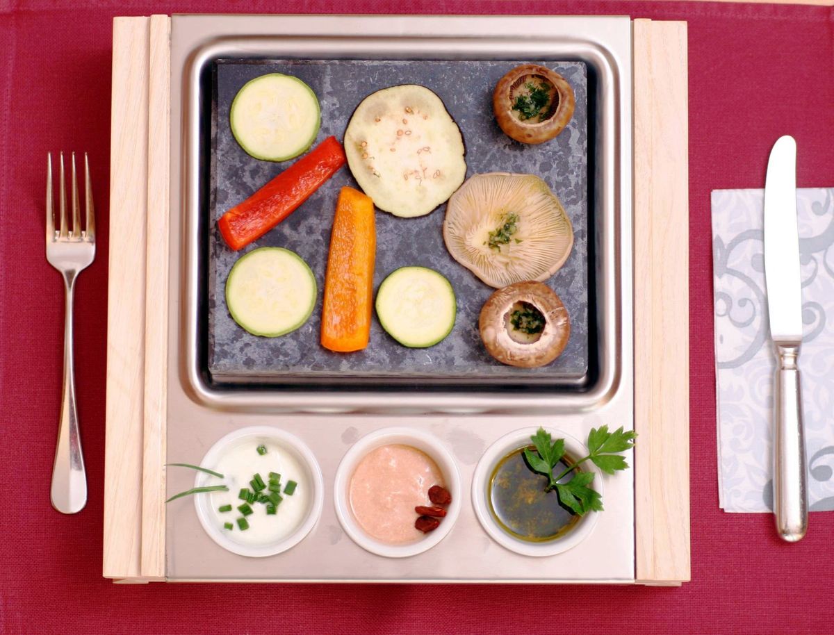 Seit Jahren servieren wir Menüs auf dem Heißen Stein. An Ihrem Platz garen und braten Sie Ihr Essen selbst ganz ohne Fett oder Öl und bestimmen, was auf Ihrem Teller landet.
